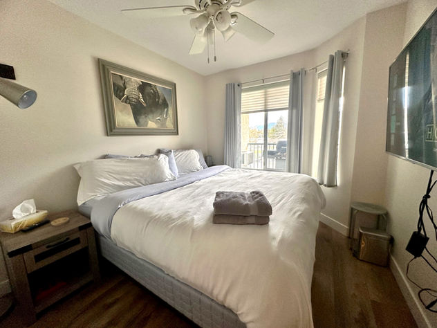 Experience the ultimate comfort in the master bedroom on the luxurious king sized bed and a 50" smart TV mounted on the wall, providing you a private retreat to unwind and enjoy, if the kiddos or friends are sleeping on the pull out couch.